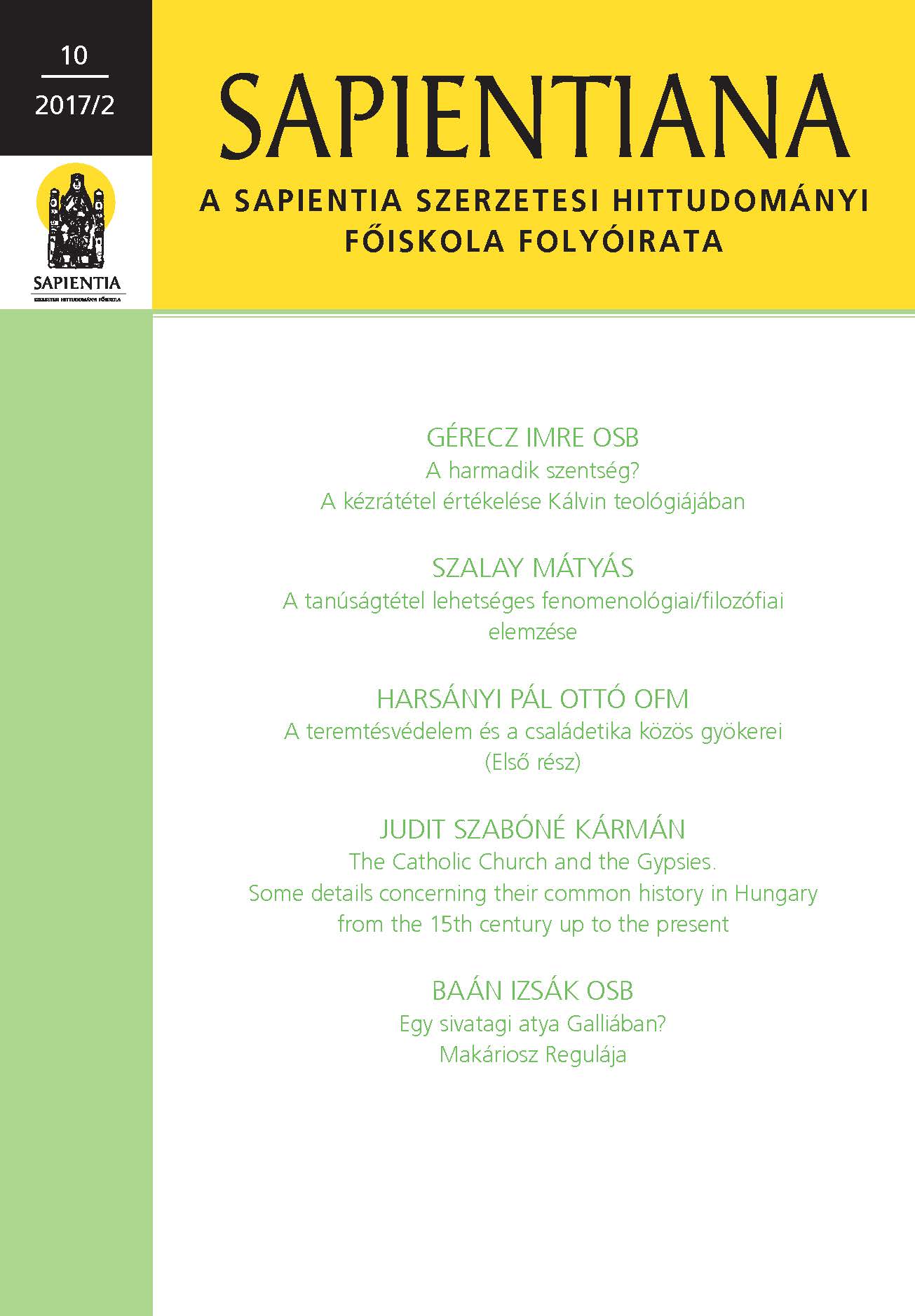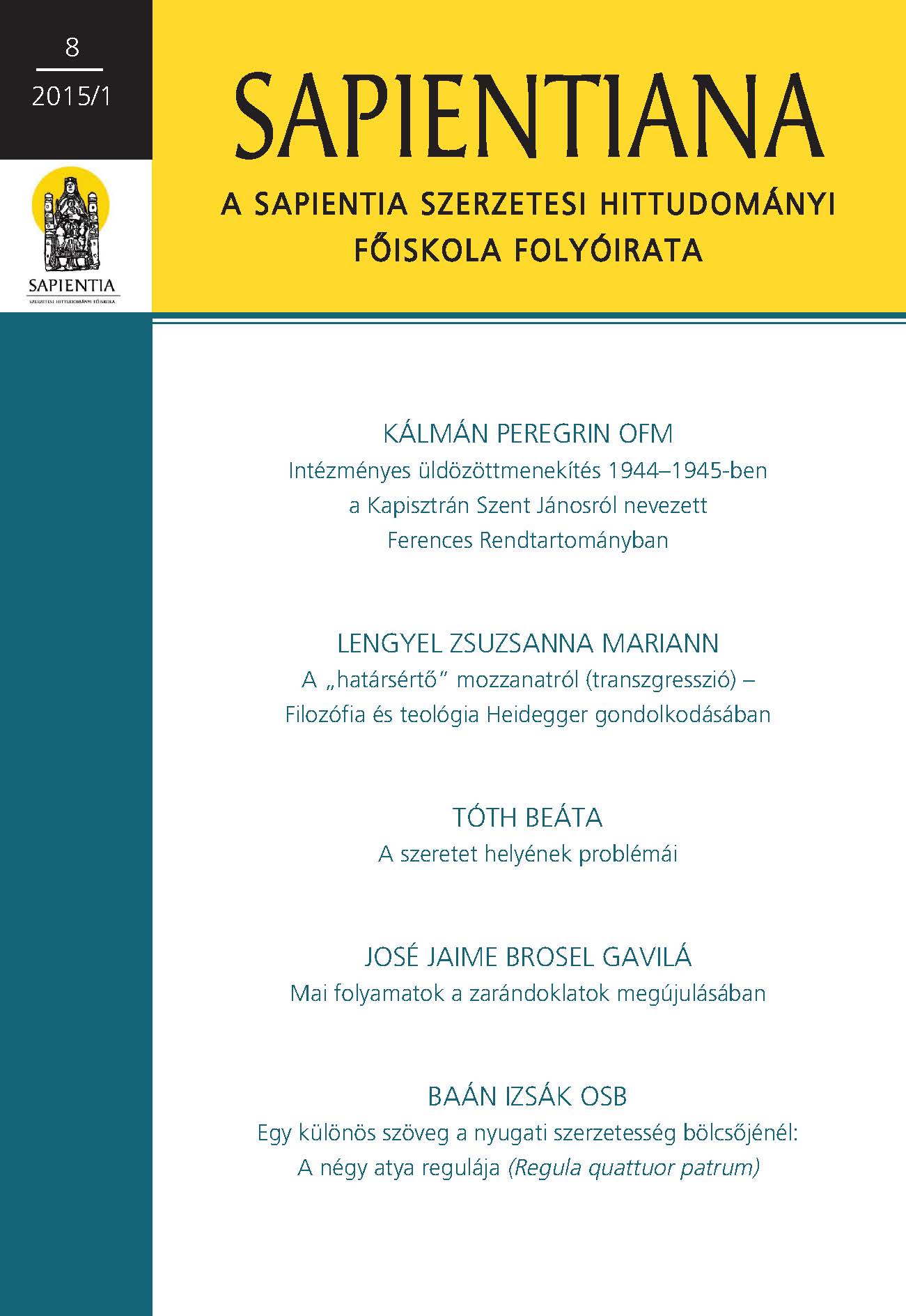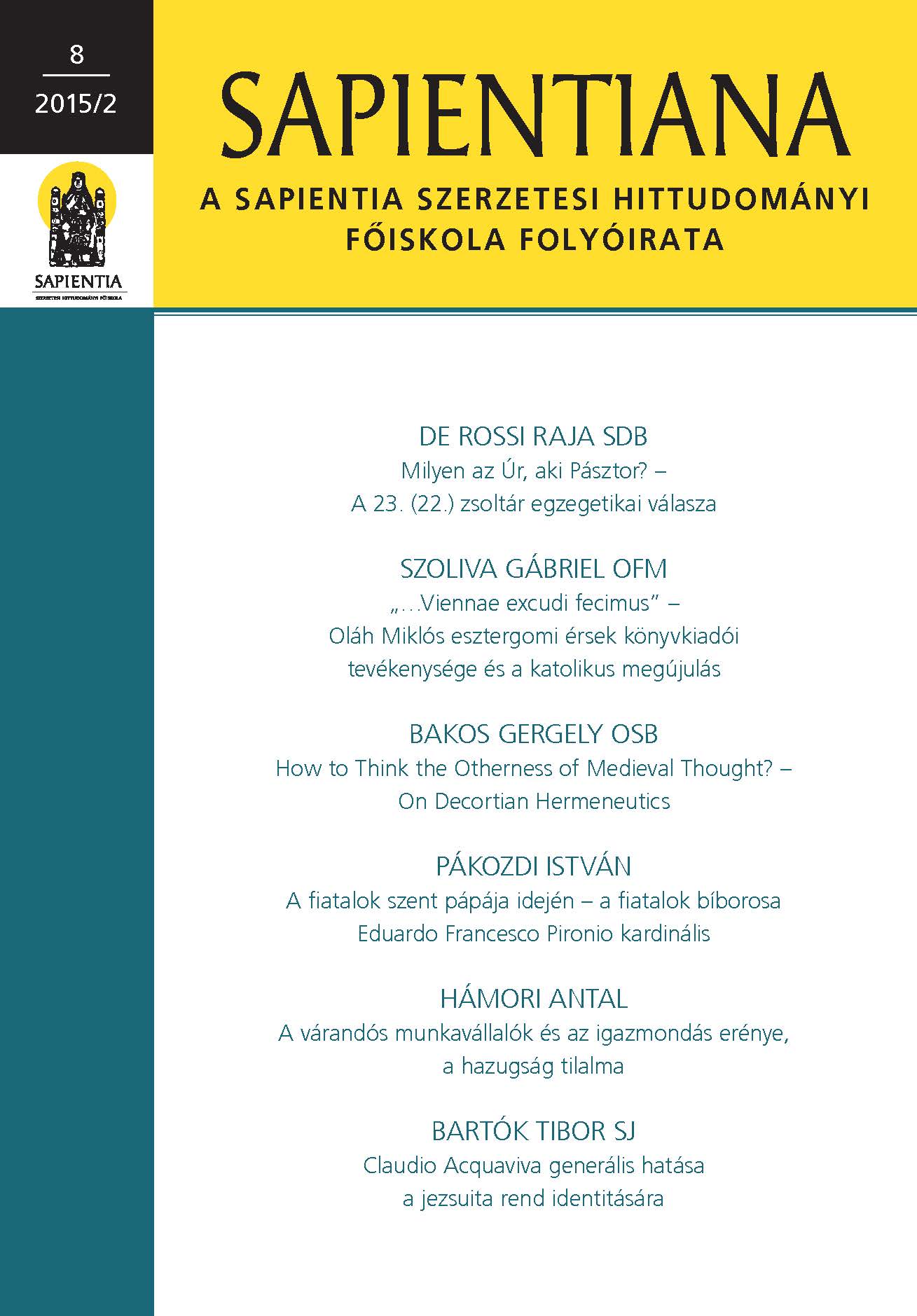 SAPIENTIANA – a Sapientia Szerzetesi Hittudományi Főiskola folyóirata