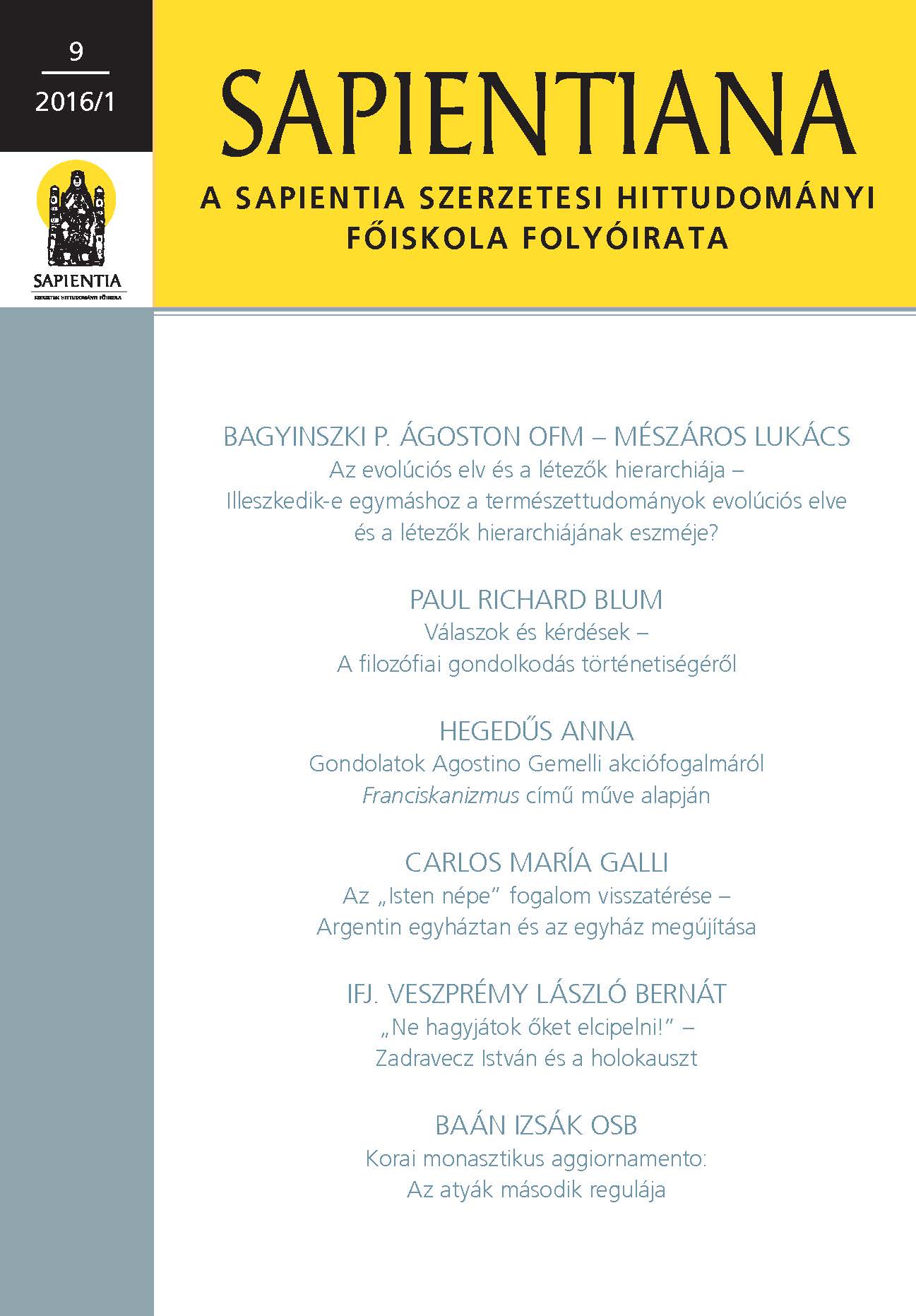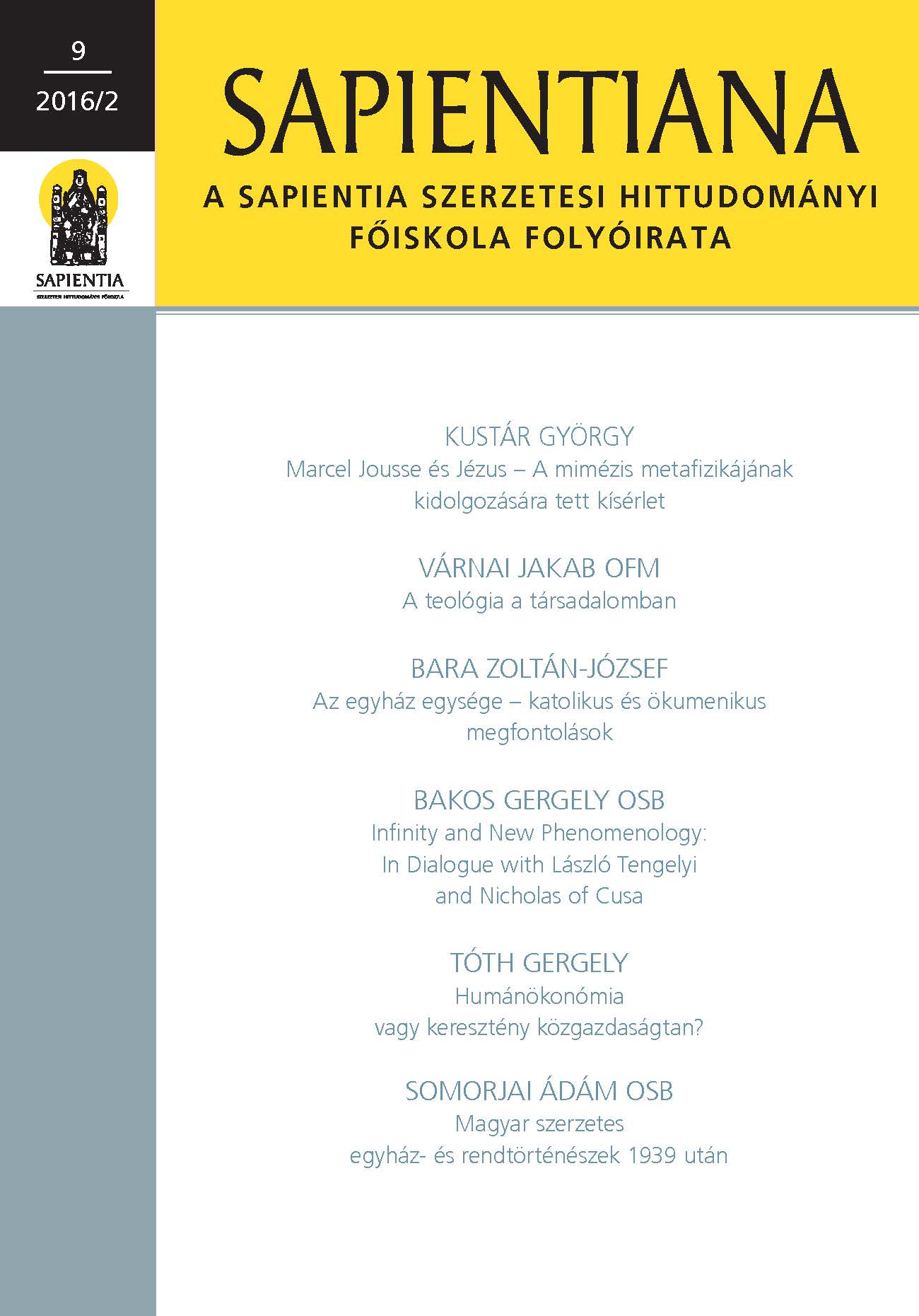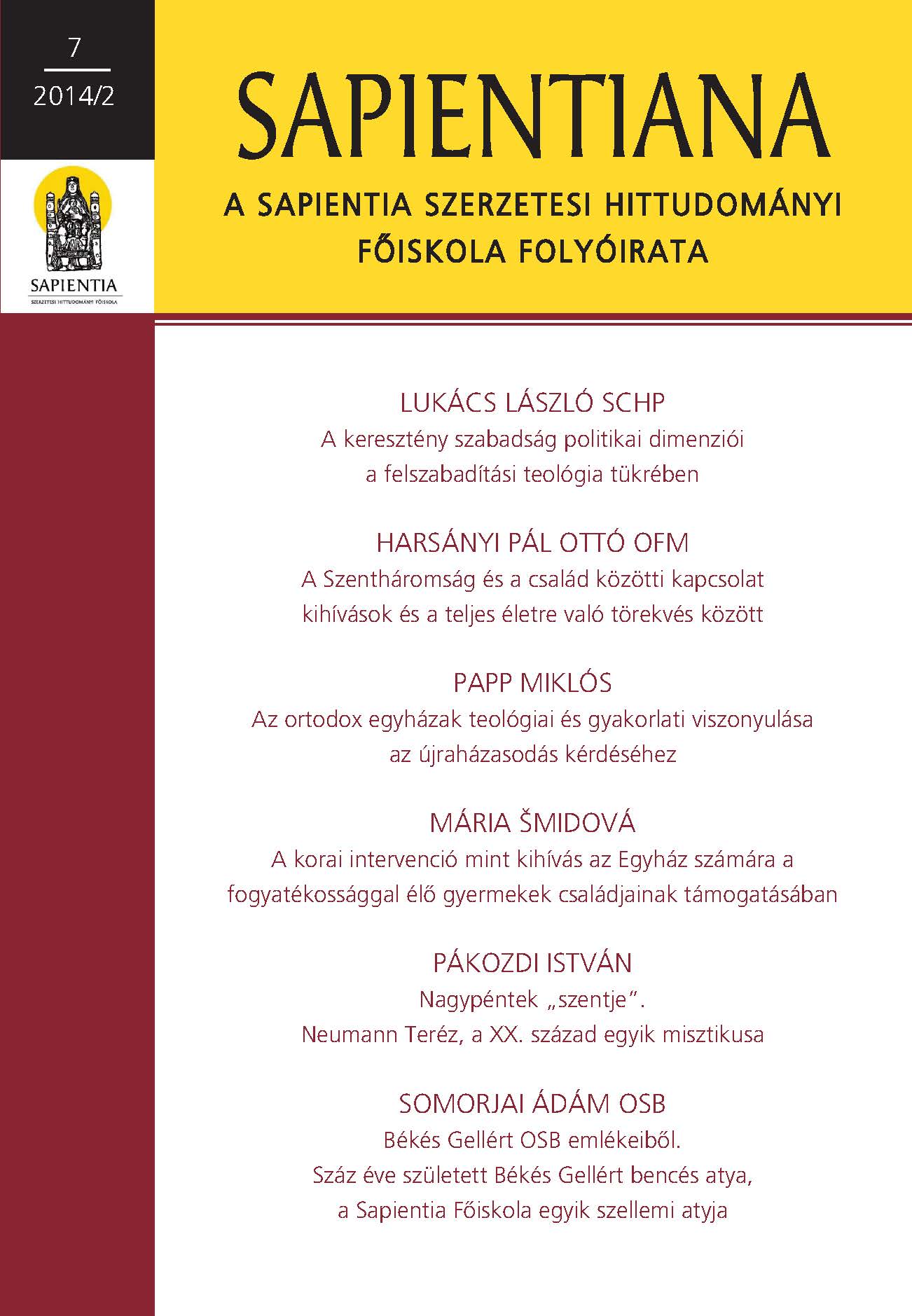 SAPIENTIANA – a Sapientia Szerzetesi Hittudományi Főiskola folyóirata